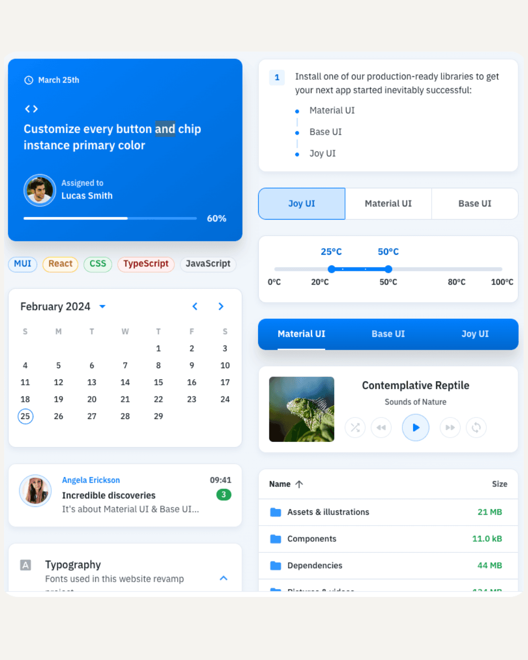 We work with a set of free and paid UI libraries to ship your new features faster. You can get both benefits of material UI and customization.